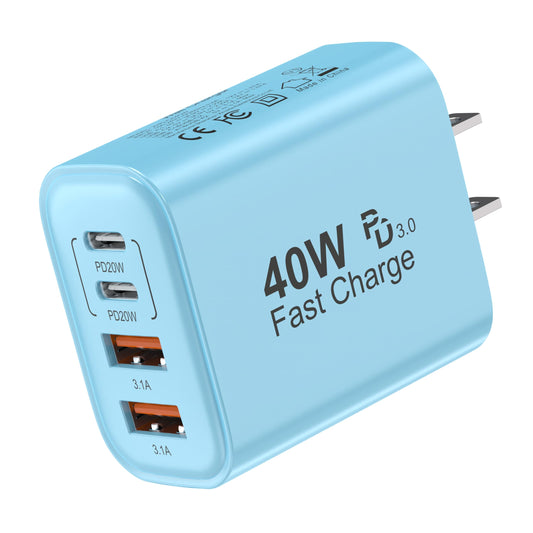 USB C Charger Block, 40W 4 Ports USB-C Wall Charger Plug Fast Charging, for iPhone Charger, QC Multiport Adapter, USB A Type C Box Brick Cube for iPhone 17 16 15 14 13 12 Pro Max, Samsung Galaxy