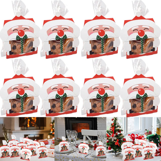 8 Pcs Mini Christmas Candy Boxes With Cellophane Bags And Twist Ties Cartoon Santa Claus Design Gift Box Paper Merry Christmas Goodie Cookie Boxes For Xmas Holiday Party Supplies