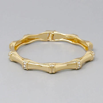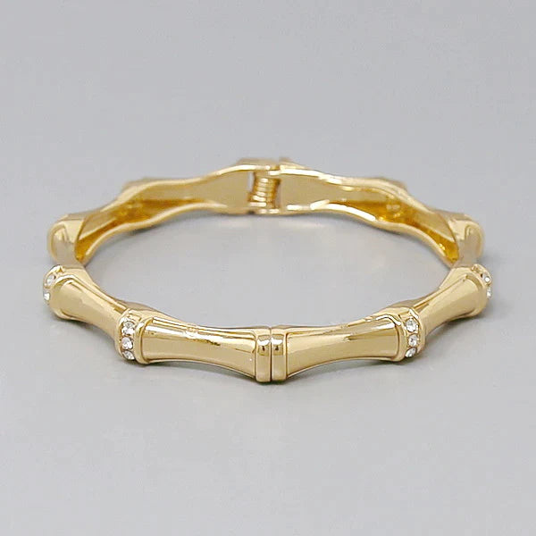 Bamboo Texture Glass Stone Pave Bangle Bracelet