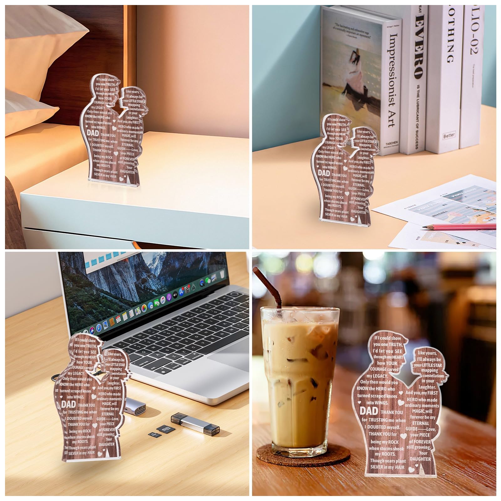 - Acrylic Material: Dad gifts from daughter are made of clear acrylic, the outline is neat, the smooth and clear surface is easy to clean, and the soft cloth will restore the brightness, which can still maintain the amazing texture when first given for many years