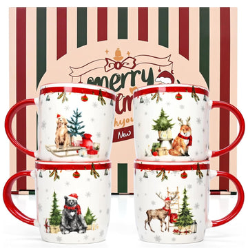 Celebrate Christmas with a lovely Christmas mugs set of 4! The Christmas mugs can hold up to 11 fl oz and feature cute prints of cunning foxes, gentle bears, adorable dogs and noble deer. Let these forest dwellers add warmth and festive cheer to your holiday mornings and cozy evenings.