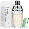 Glass Cocktail Shaker Kit, JOYCEMALL 13 Ounce Martini Mocktail Making Set with Leakproof Metallic Steel Lid & Strainer for Home Use & Bar Cart - Gold