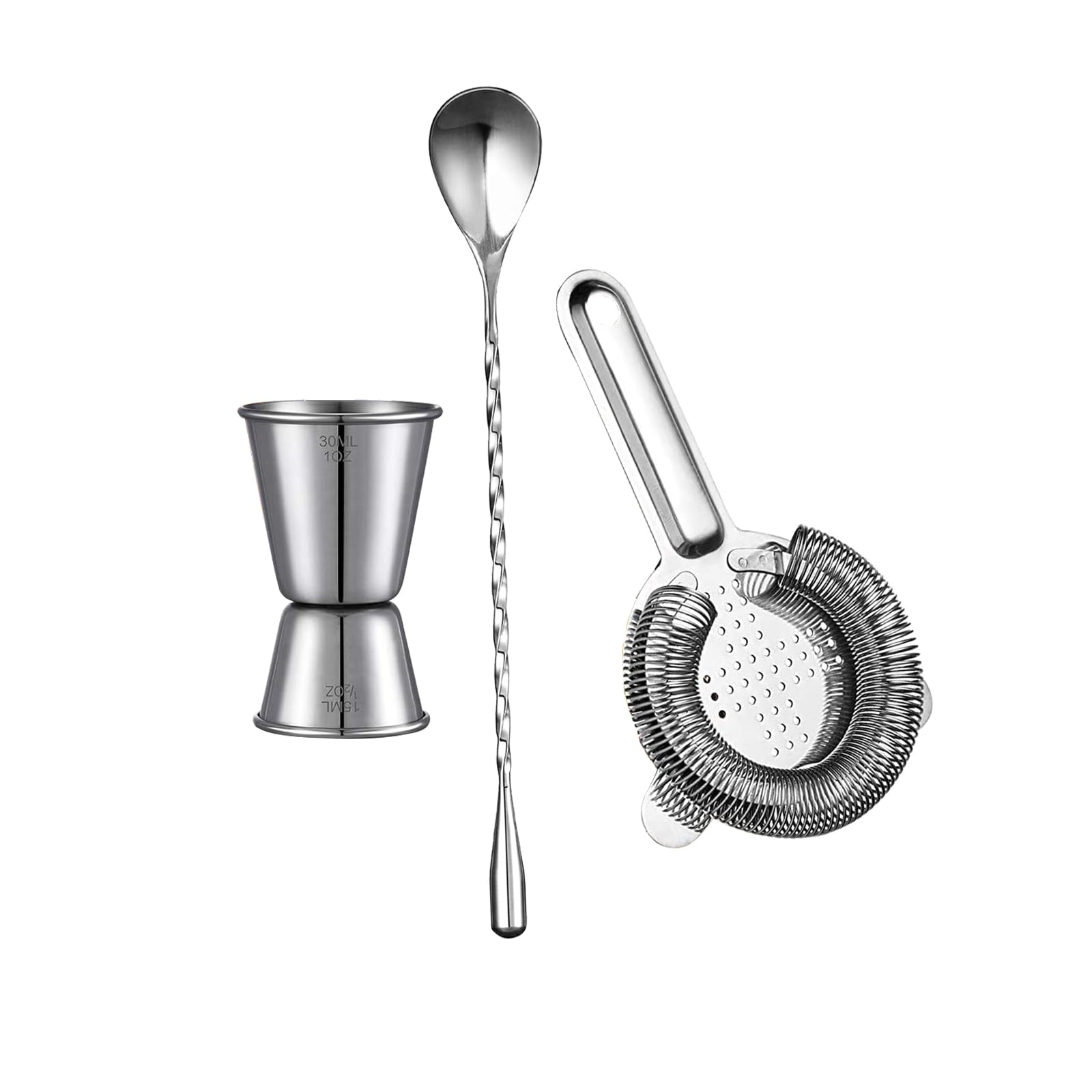 This is an individual shaker only, not include additional double jigger, Hawthorne strainer, muddler, bar spoon, bottle pourer, Boston shaker or martini glasses.