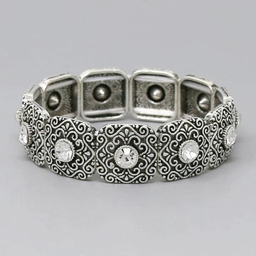Glass Stone Detail Metal Square Stretch Bracelet