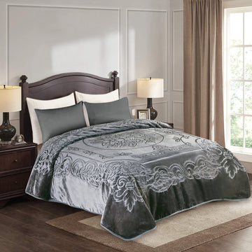 Heavy Thick Mink Blanket 9Lb for Winter,1 Ply Embossed Warm Bed Blanket King,85"x95",Grey