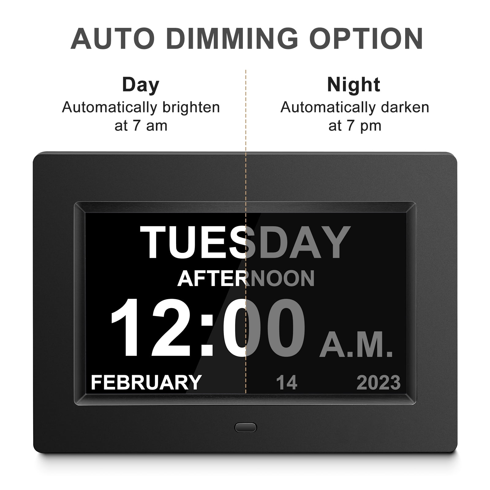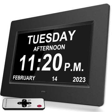 Jazeyeah 7 inch Large Digital Alarm Clock with Day and Date for Senior, Easy to Use, Calendar Alarm Day Dementia Alzheimers Clock for Elderly Gift (Black)