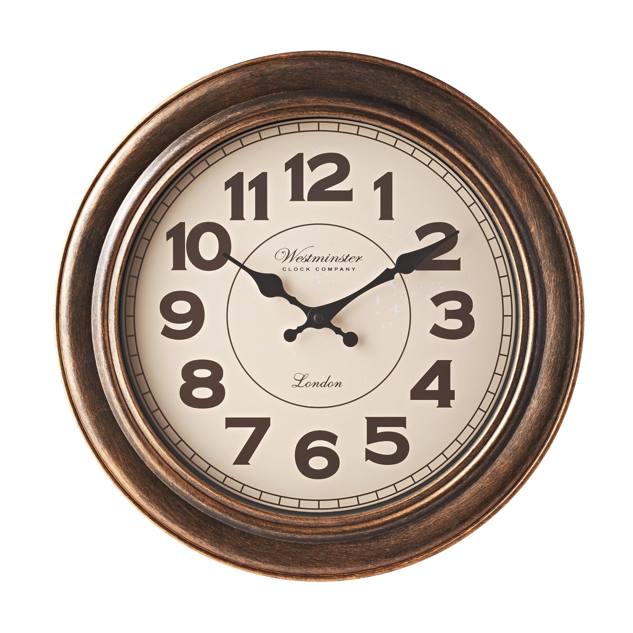 - Mainstays 15 inch Analog Wall Brushed Copper Clock: