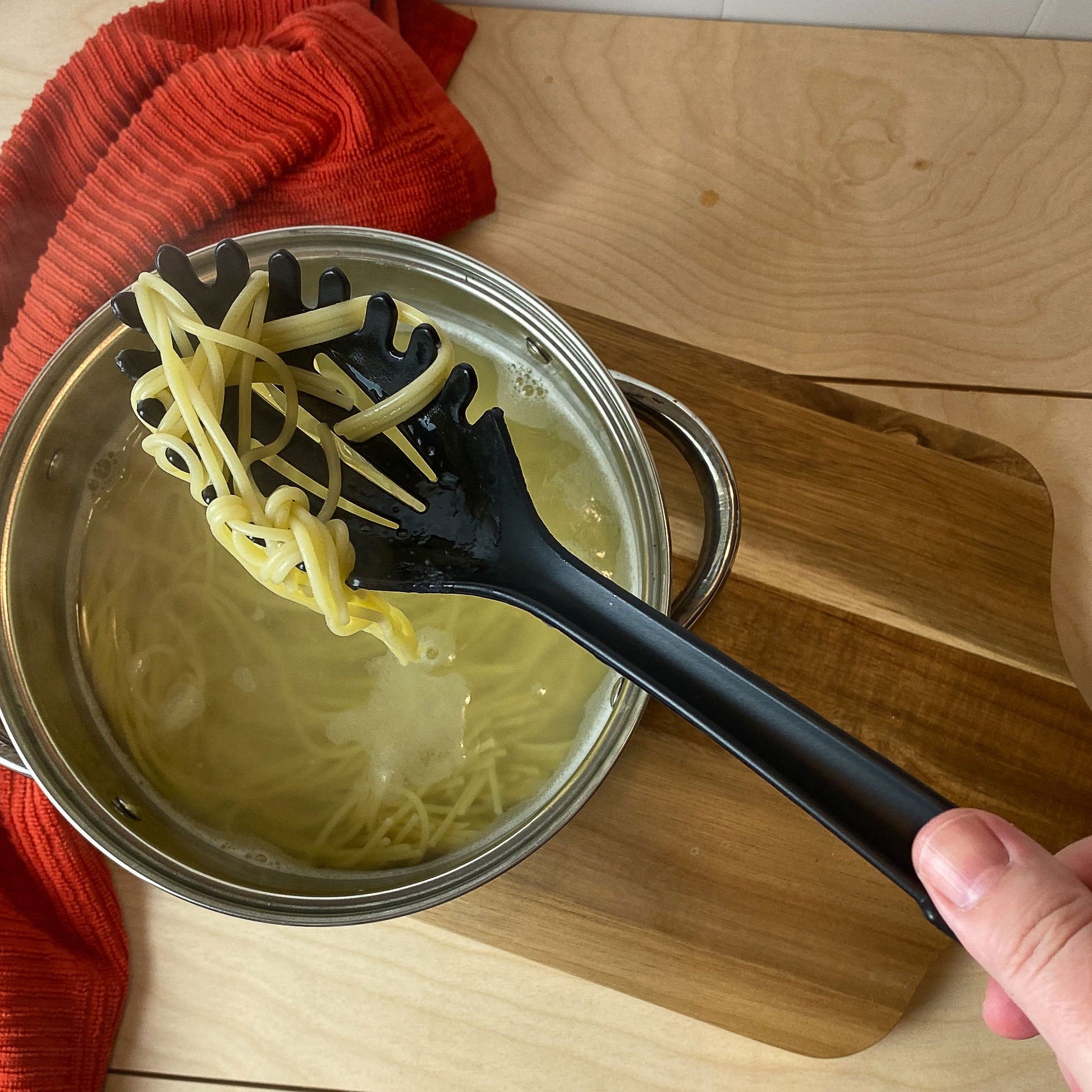 - Includes a Pasta Server, Strainer, Spoon Rest, Ladle, Slotted Basting Spoon, Solid Basting Spoon, Solid Turner and Slotted Turner