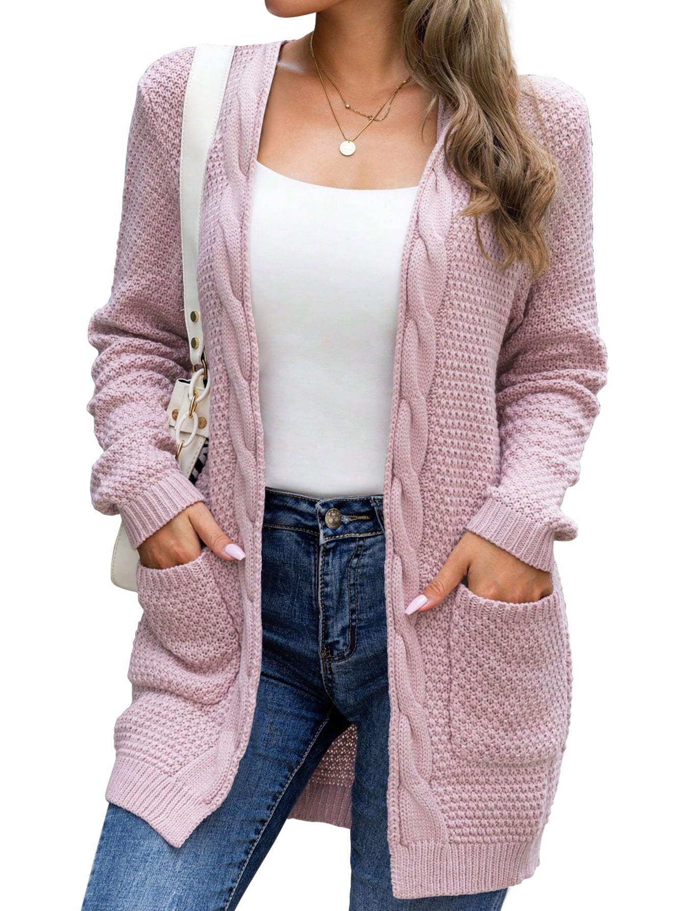 - 【Unique Design】Solid color, twist cable knit, soft and stretch fabric, below hip length, loose chunky cardigans for women.