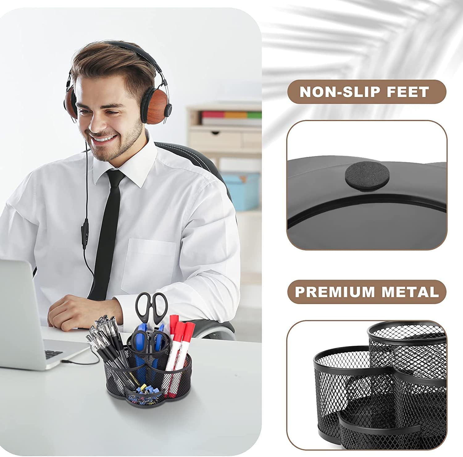 - 【DURABLE STURDY MATERIAL】Desk pen holder is made of high-quality metal with a durable anti-rust coating. Smoother and more elegant edges, no fading, more durable and safer. The pencil organizer for desk is designed with non-skid bottom to protect your desk from scratches.