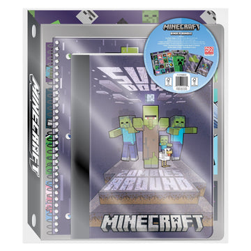 Minecraft Stationery Bundle, 3-Ring Vinyl Binder, 1-inch O-Rings, Notebook, Composition Book, Folder