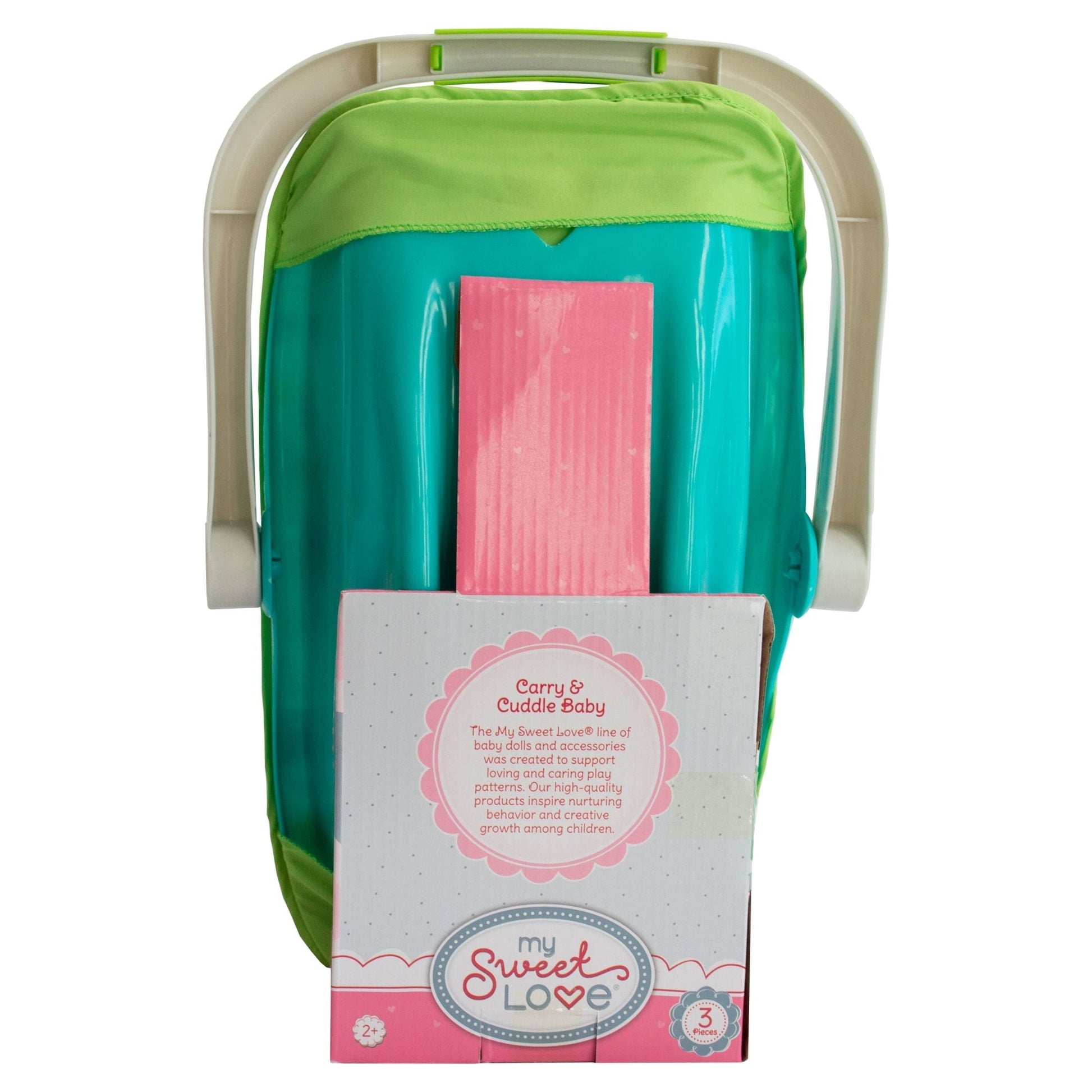 Let your little one buckles up their baby doll and transport her all around the house! The My Sweet Love 13” Baby Doll with Carrier and Handle Play Set, 3 Pieces Included, Blue makes play time, rest time, or car trips a lot more fun. It also helps teach safety and responsibility in a fun and engaging way. The toy car seat has an adjustable handle that swings up for easy carrying and rotates back down to turn the carrier into a feeding seat. The squeezable, soft-body doll is also fun for play and snuggles outside of the carrier. The My Sweet Love 13” Baby Doll with Carrier and Handle Play Set, 3 Pieces Included, Blue is designed for toddlers and children ages 2 and up.