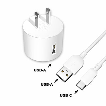 - What's in the box? 1 USB Wall Charger, 1 USB-C to USB Cable 3 ft (91.4 cm)