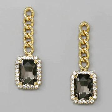 Rectangular Glass Stone Chain Drop Statement Earrings