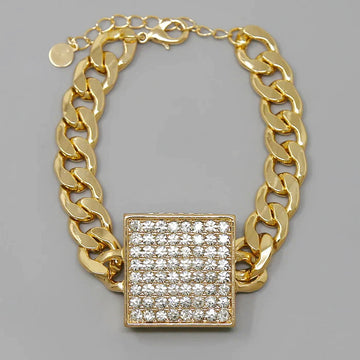 Rhinestone Pave Square Curb Chain Bracelet