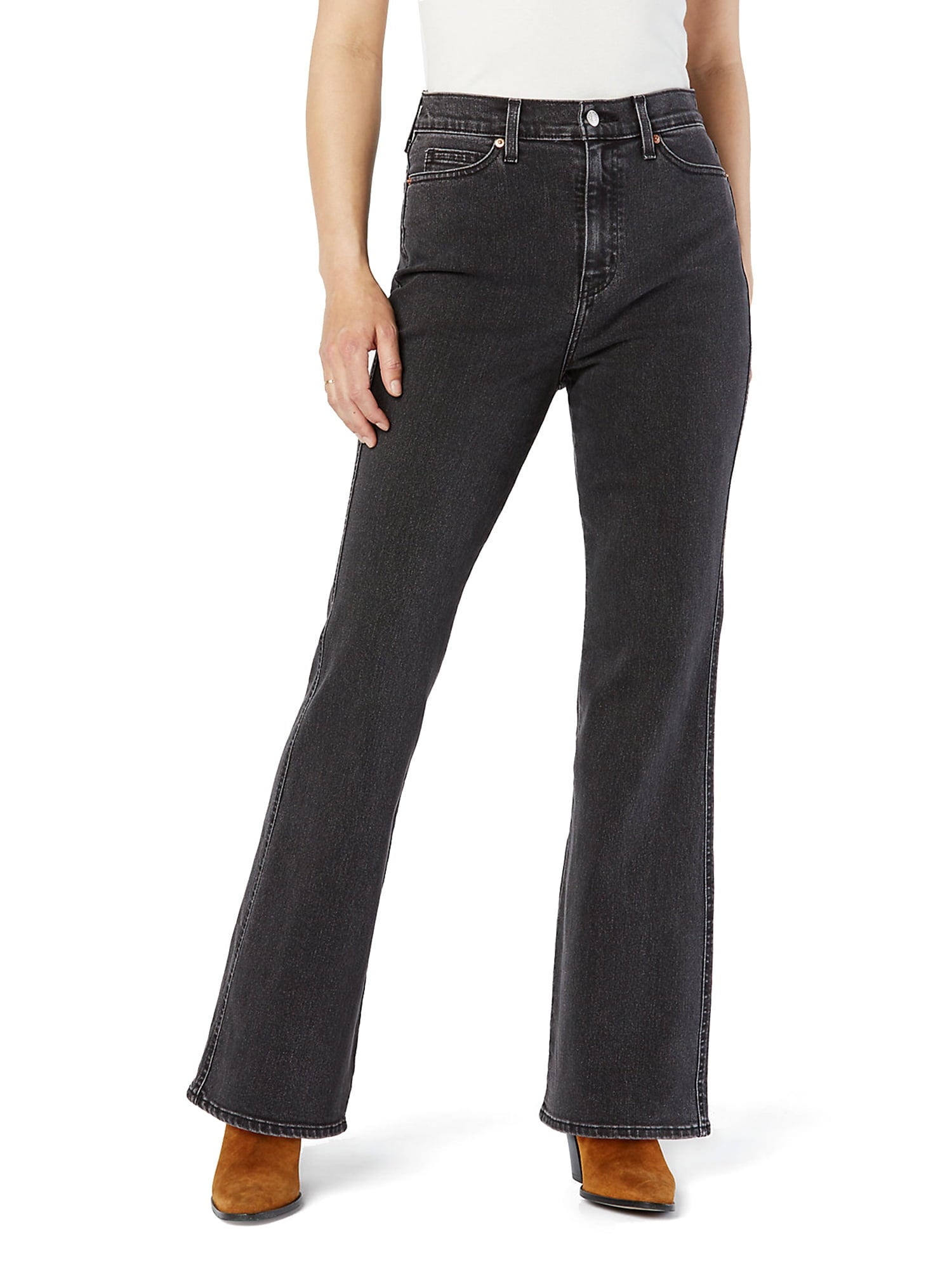 Signature by Levi Strauss & Co. Women's Heritage High Rise Flare Jeans are an on-trend pair that's easy to wear. They have a high waist, zip fly and 2-button closure. Fit is straight through the seat to the knee, then flared down to the hem. Soft, stretchy fabric moves with you but keeps its shape. Dress them up with a cute top or down with a tee. Choose shoes that blend in or stand out.