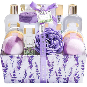Spa Luxetique Gift Sets for Women - 12 Pcs Lavender Scent Bath Baskets, Beauty Birthday Gifts for Her