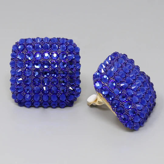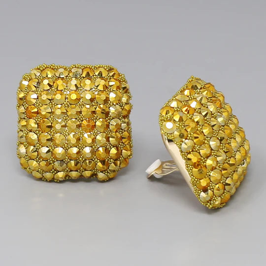 Square Faceted Stone And Metal Bead Embellished Clip On Earrings