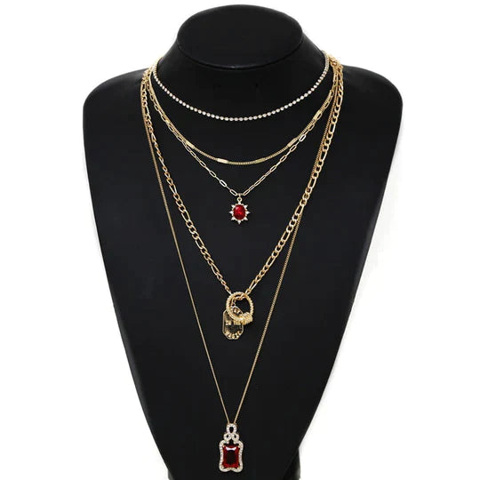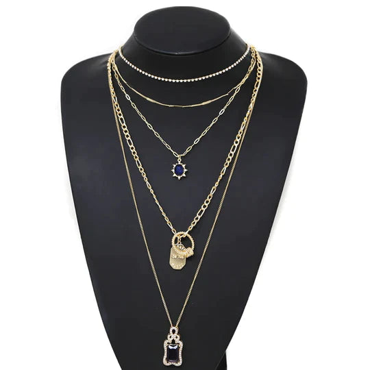 Stay In The Magic Glass Pendant Layered Chain Necklace