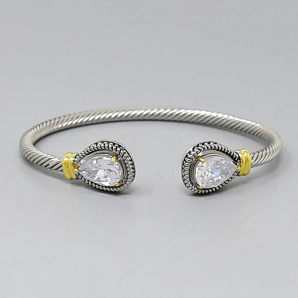 Teardrop Glass Stone Textured Metal Cuff Bracelet