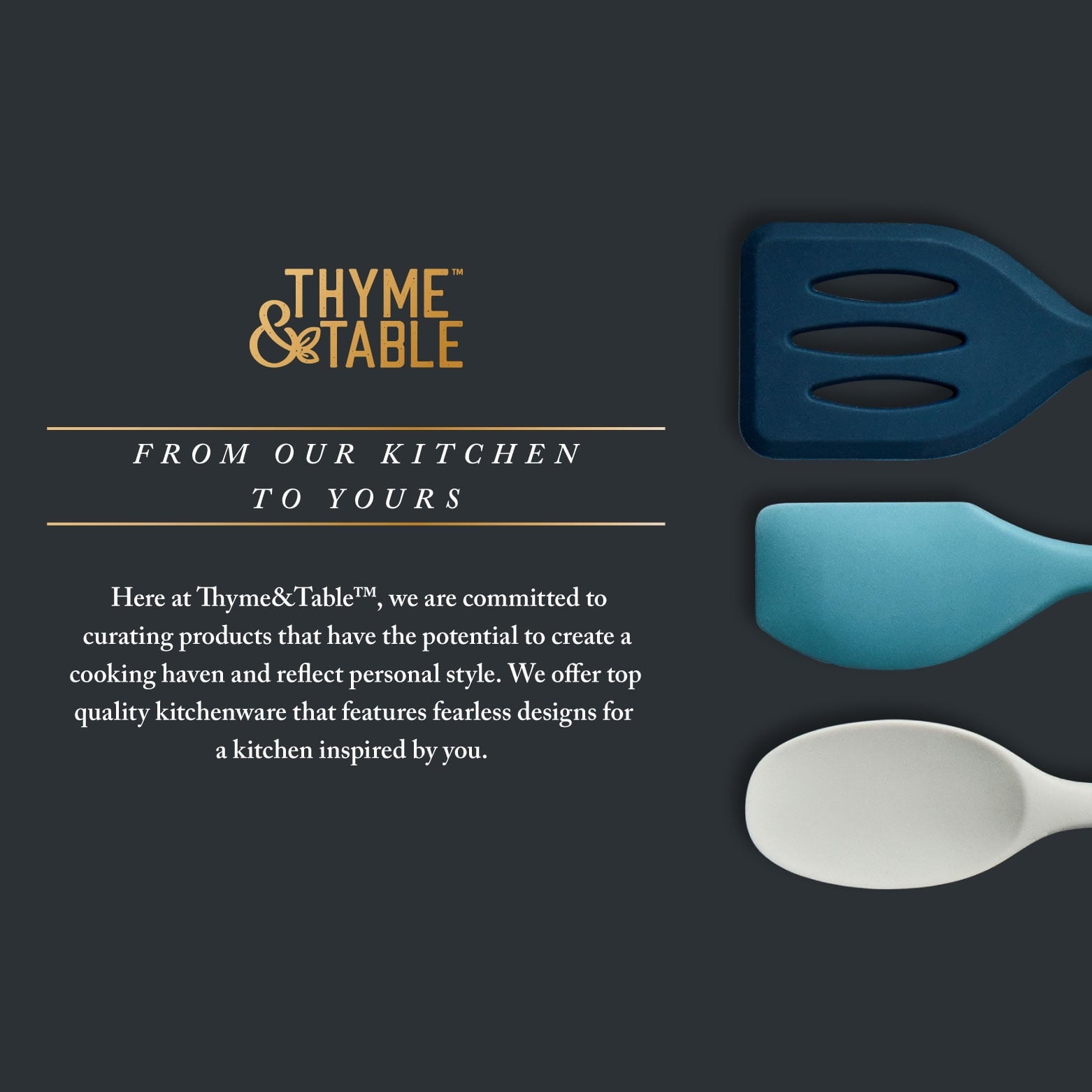 Introducing the Thyme & Table 3-Piece Silicone Mini Utensil Set, your go-to solution for precise and efficient cooking. This set includes three essential utensils: an all-purpose spatula, a pointed spatula, and a slotted turner, offering versatility for a wide range of culinary tasks. Crafted from high-quality silicone, these mini utensils are heat-resistant and durable, ensuring they can withstand the rigors of everyday cooking. The silicone material is gentle on non-stick cookware, preventing scratches and damage. With their compact size, these utensils are perfect for smaller pots and pans, while their ergonomic handles provide a comfortable grip for easy handling. Elevate your cooking experience with the Thyme & Table 3-Piece Silicone Mini Utensil Set and enjoy precise and efficient cooking every time.